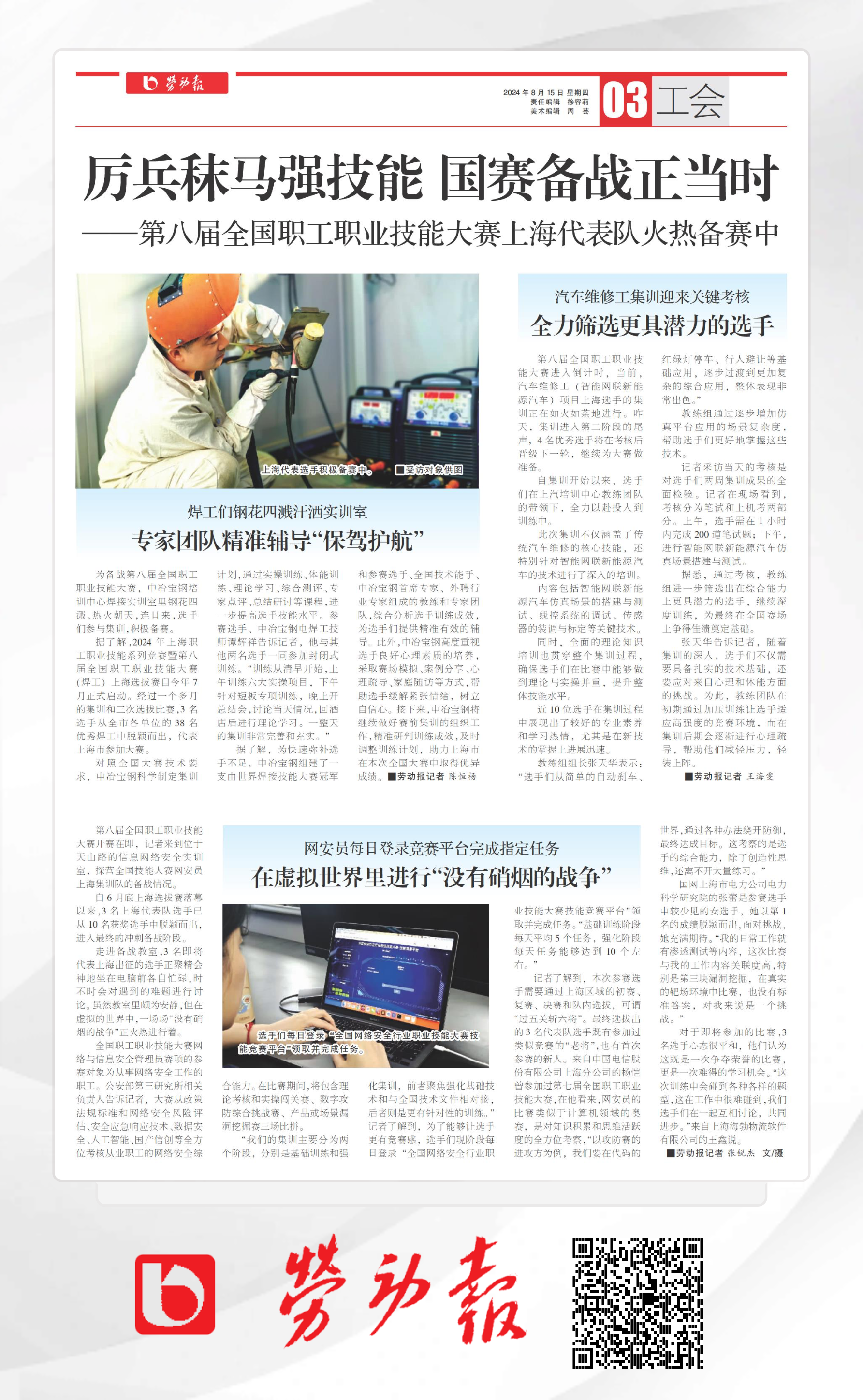 《勞動報》:厲兵秣馬強技能 國賽備戰(zhàn)正當時——第八屆全國職工職業(yè)技能大賽上海代表隊火熱備賽中